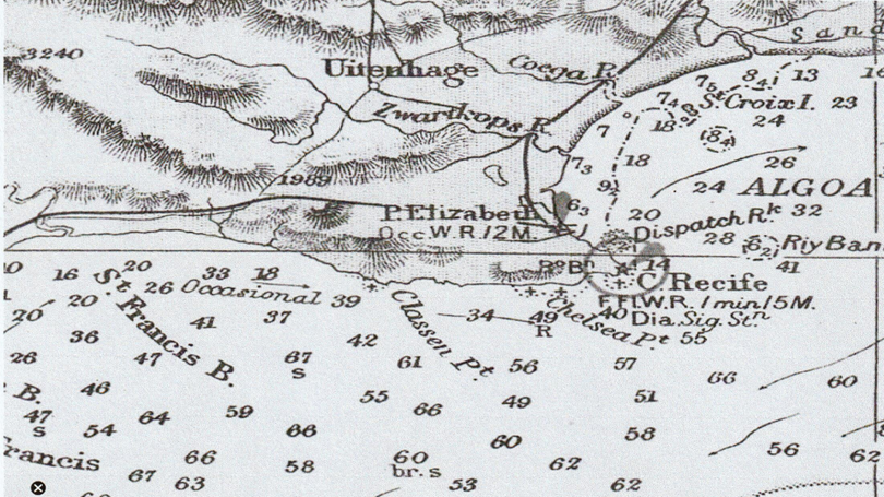 Map of Algoa Bay dated 1867 showing “Dispatch Rock” – today also called Roman Rock