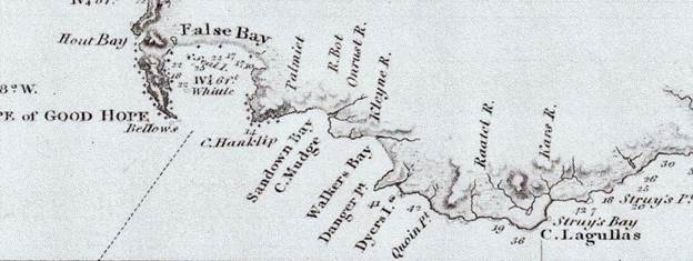 - “The India Directory, or Directions for sailing to and from the East Indies” 6th Edition 1852, by Captain James Horsburgh, RN, with extensive references made re comments and notes on coastal features and dangers on the southern coast of the Cape by a William Walker.