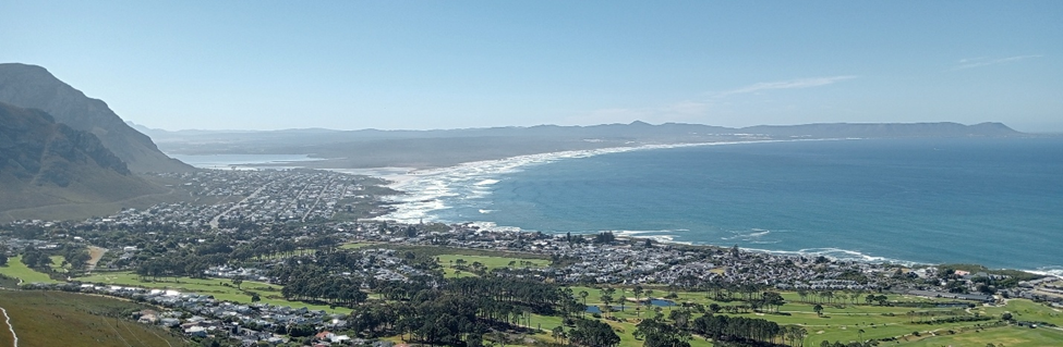Modern view of Walker Bay taken from the mountain above Hermanus looking over the north-eastern part of Walker Bay towards Gansbaai and Danger Point in the distance.
